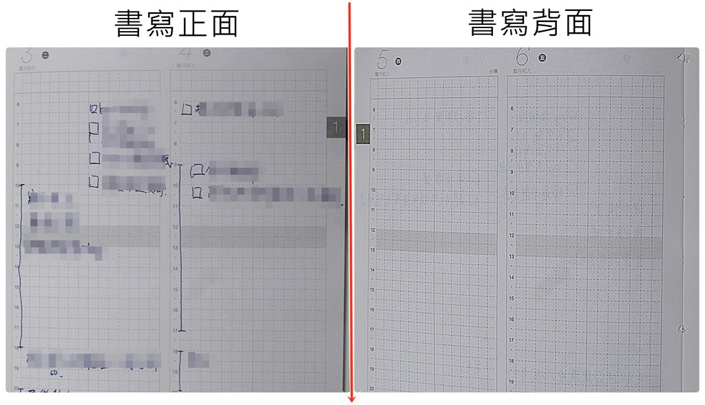 感覺這樣的改變是為了增加中間直線軸書寫的空間,可惜今年我買A6尺寸的,不然就可以來量量看格子是不是有變大